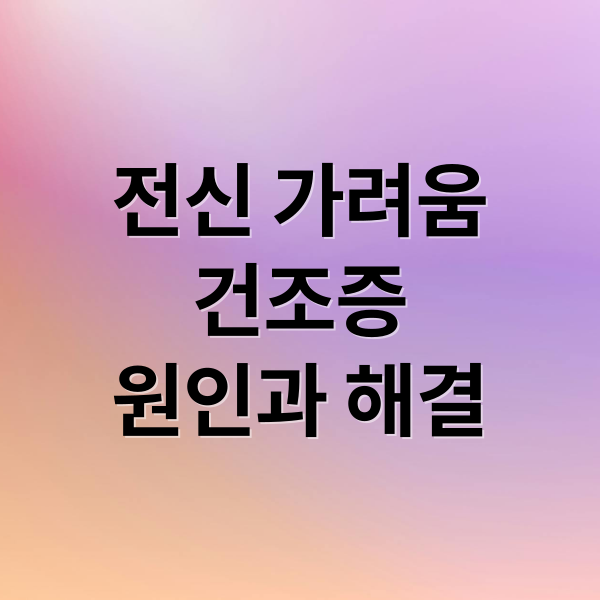 전신 가려움 건조증은 단순한 피부 문제가 아닌 몸의 신호일 수 있습니다. 원인과 해결책을 제대로 알아 건강한 피부를 되찾는 완벽 가이드를 제공합니다. 정의, 원인, 증상, 치료법, 궁금증까지 꼼꼼하게 알려드릴게요.