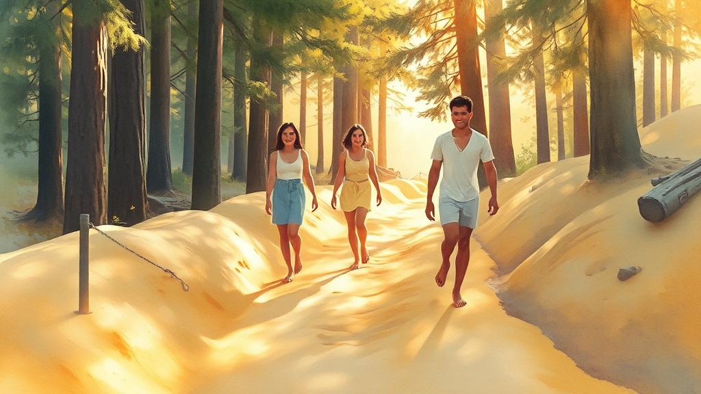 황토길을 걸으며 땅과의 교감을 통해 스트레스를 해소하고 혈액순환을 개선할 수 있습니다.