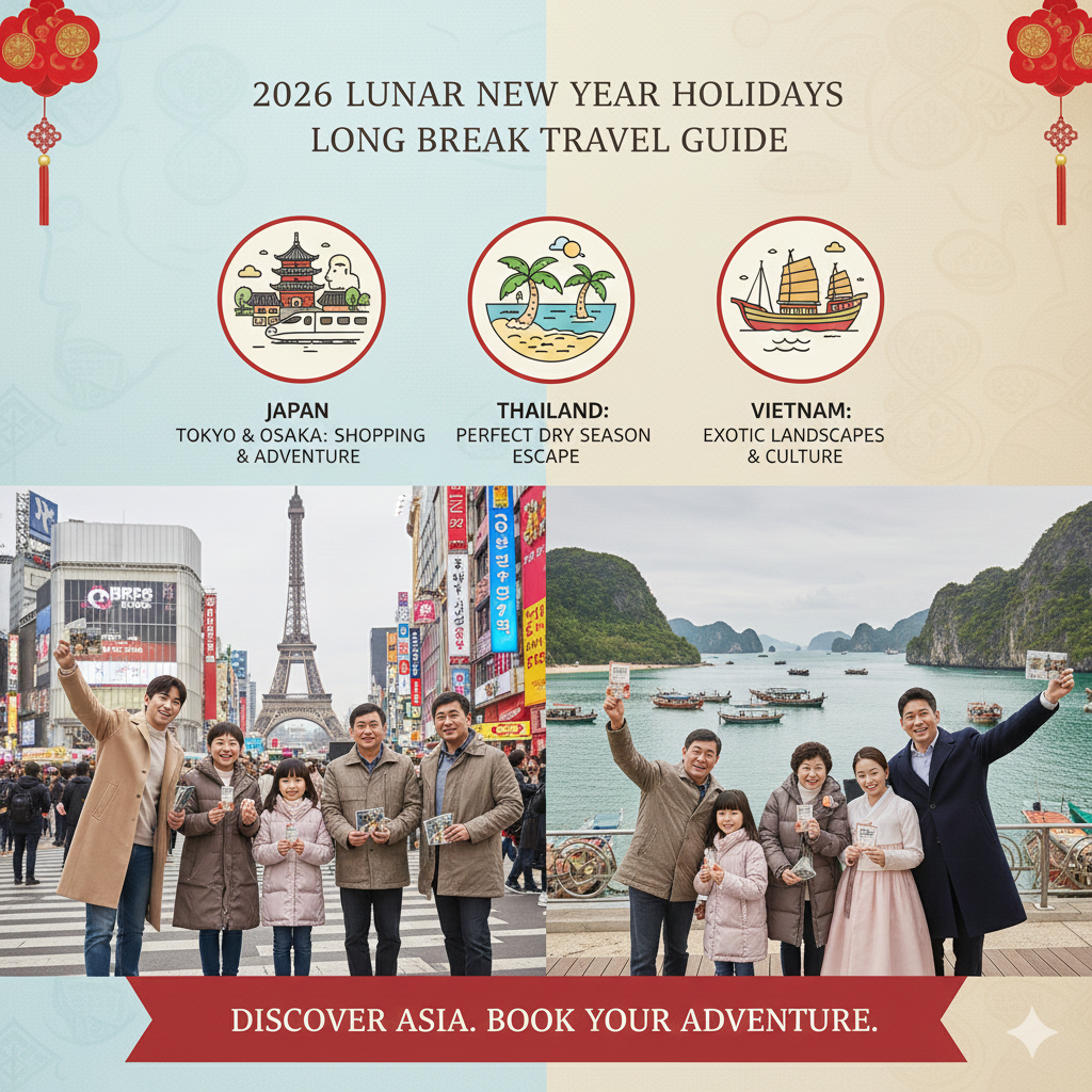 2026년 설날 연휴에 떠나기 좋은 여행지를 추천해 드릴게요. 짧은 일정이라면 일본, 긴 휴가라면 태국, 색다른 경험을 원한다면 베트남을 추천합니다. 국내 여행으로는 여수나 포항에서 촌캉스를 즐기는 것도 좋겠죠?
