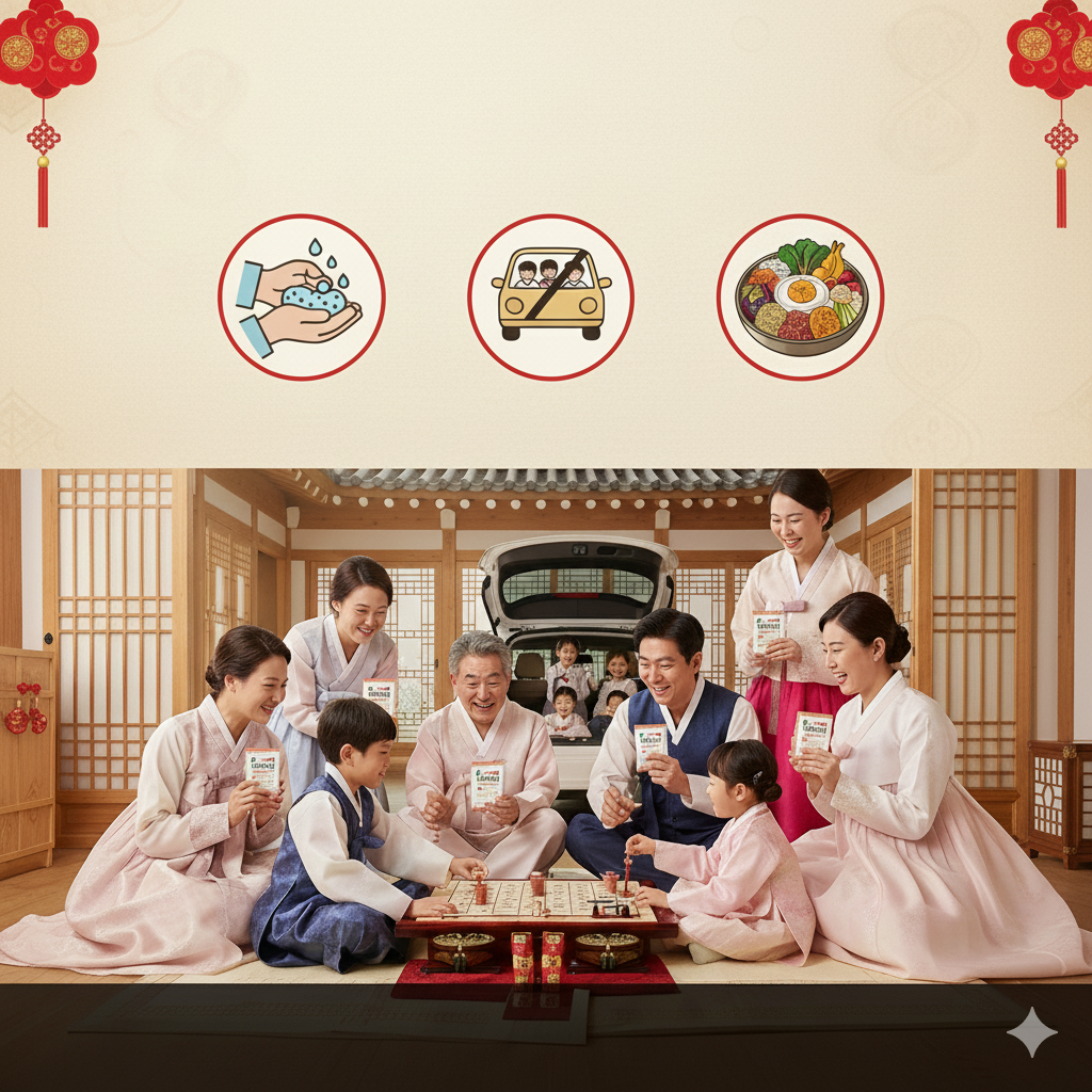 2026년 설날, 5일에서 최장 9일까지 쉴 수 있는 황금연휴를 건강하고 안전하게 보내는 방법을 알려드립니다. 개인위생 관리, 안전 운전, 건강한 식습관을 챙겨서 즐거운 연휴를 보내세요!